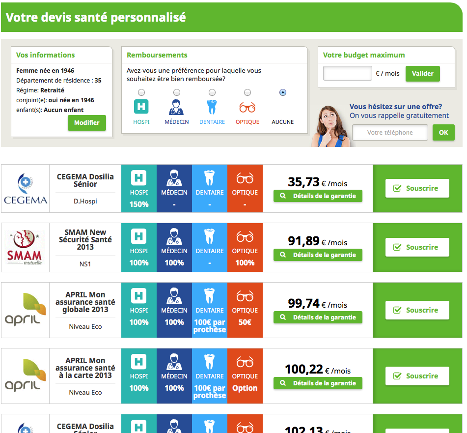 Grâce à son comparateur assurance et mutuelle, l'assureur en ligne se charge de comparer les différentes offres disponibles sur le marché français et ne retient que les couvertures les plus adaptées.